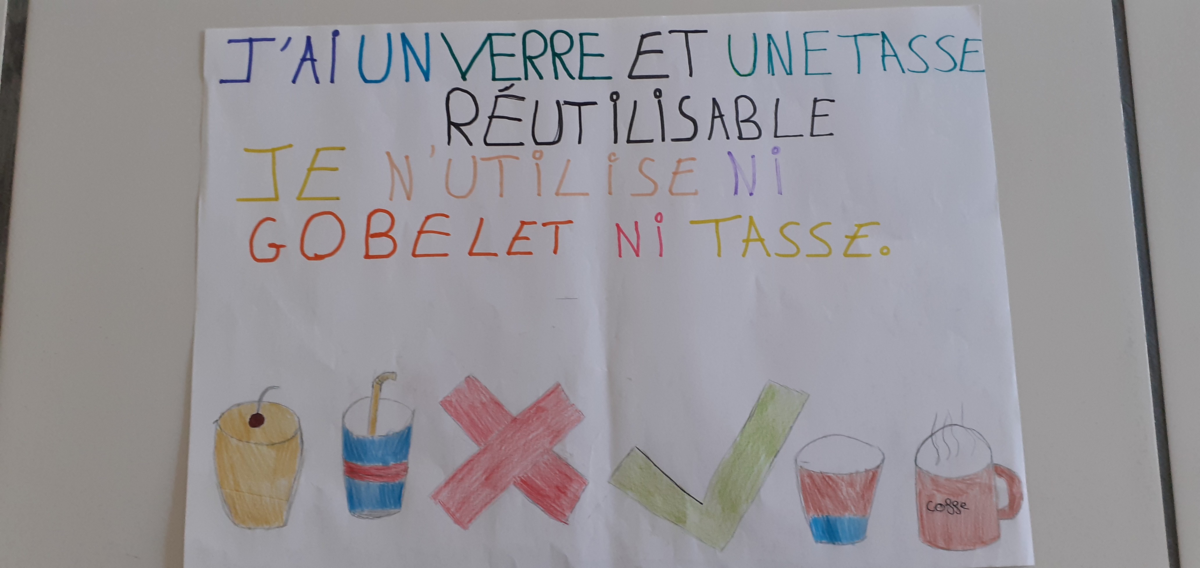 Léonie, Noéline, Valentin – J’ai un verre et une tasse réutilisables – je n’utilise ni gobelet, ni tasse en plastique